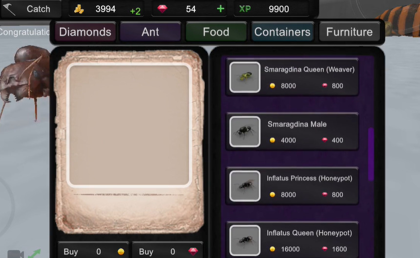2. 具有多種不同的螞蟻種族,每一種種族都擁有不同的優點和能力,玩家可以自由選擇發展;